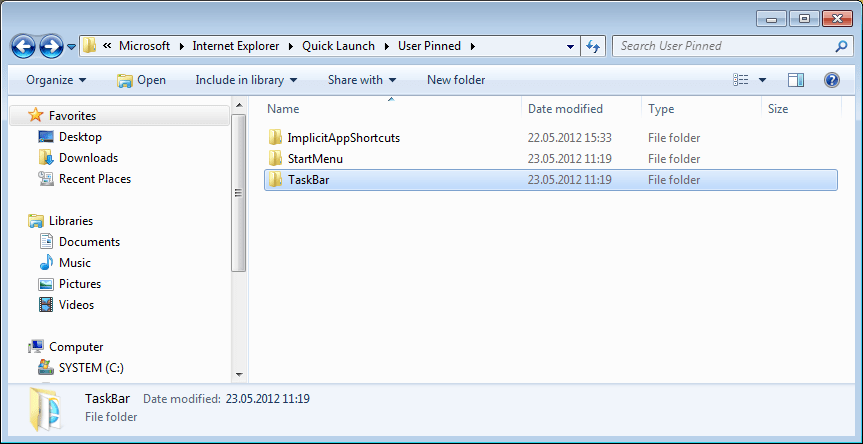 Now head into the %AppData%\Microsoft\Internet Explorer\Quick Launch\User Pinned folder and copy the icons to a network share you can use in Group Policy Preferences.